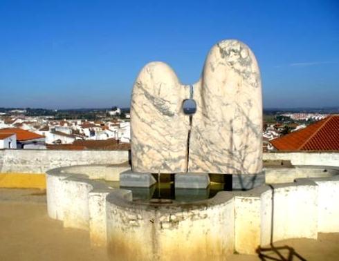 até pode ser uma obra muito valiosa de um artista famoso e muito bom, mas, tenham lá paciência... não fica bem aqui, não condiz nada com o que rodeia o local onde "plantaram" estes pedregulhos de mármore que mais parecem umas "Ovas de Pescada" - ainda por cima, a tapar a bonita vista para o horizonte, no miradouro do pequeno e simples jardim contíguo ao Templo de Diana.