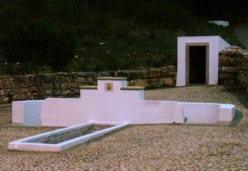 Fontanário e lavadouro público da pequena aldeia histórica, onde se situa a Capela (redonda) de S. Mamede, junto à "Ribeira de Janas", «habitada pelas Fadas dos Rios».