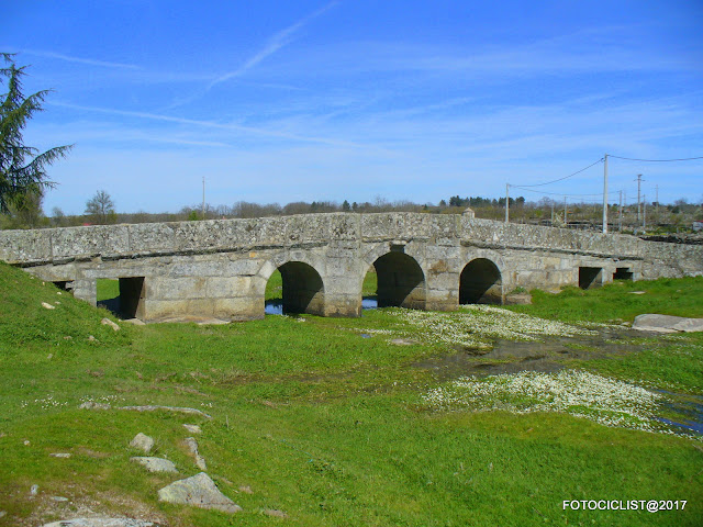 Parou o movimento de caminheiros peregrinos que vão a Compostela, não há ruído de motores, instalou-se o silêncio, apenas entrecortado pelo coaxar de duas ou três rãs escondidas na erva da margem - o sossego, a paz.